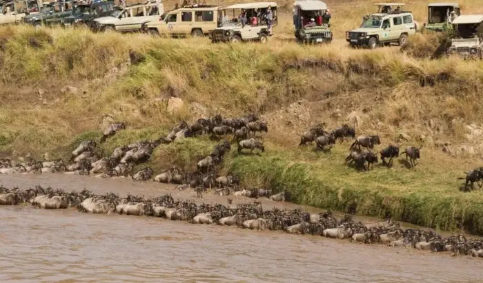 Not at all. While the 1.5+ million wildebeest dominate the migration, they are joined by over 200,000 zebras, hundreds of thousands of Thomson’s and Grant’s gazelles, and other antelope species. During your Serengeti River Crossing Migration Safari, you’ll also witness apex predators like lions, hyenas, and Nile crocodiles in intense action as they target vulnerable herds crossing the Mara River. This is one of the most dramatic wildlife events on Earth.